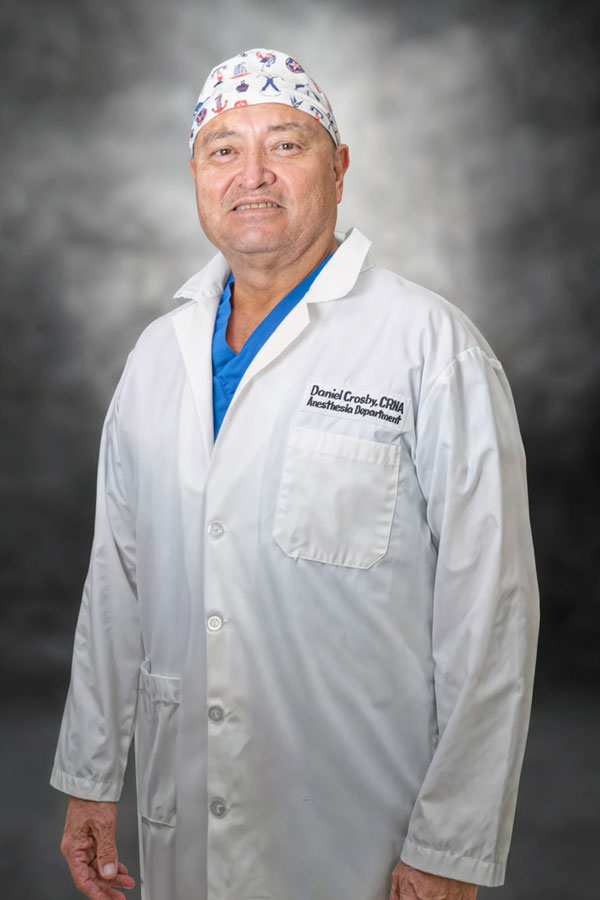 Daniel Crosby, MS, CRNA, is a Certified Registered Nurse Anesthetist and retired Commander of the United States Navy Nurse Corps with over 26 years of service. A Georgetown University graduate, he brings unmatched clinical, military, and leadership experience to his role as Chief Nurse Anesthetist at GRMC. Daniel is recognized for his excellence in anesthesia care, education, and mentorship across diverse clinical environments worldwide.